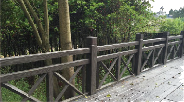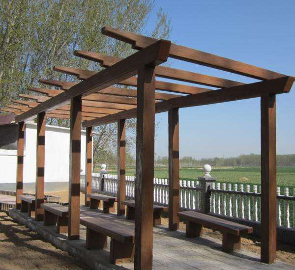 设有仿木长廊、仿木围栏、仿木椅、仿木花箱、仿木花桶等产品。